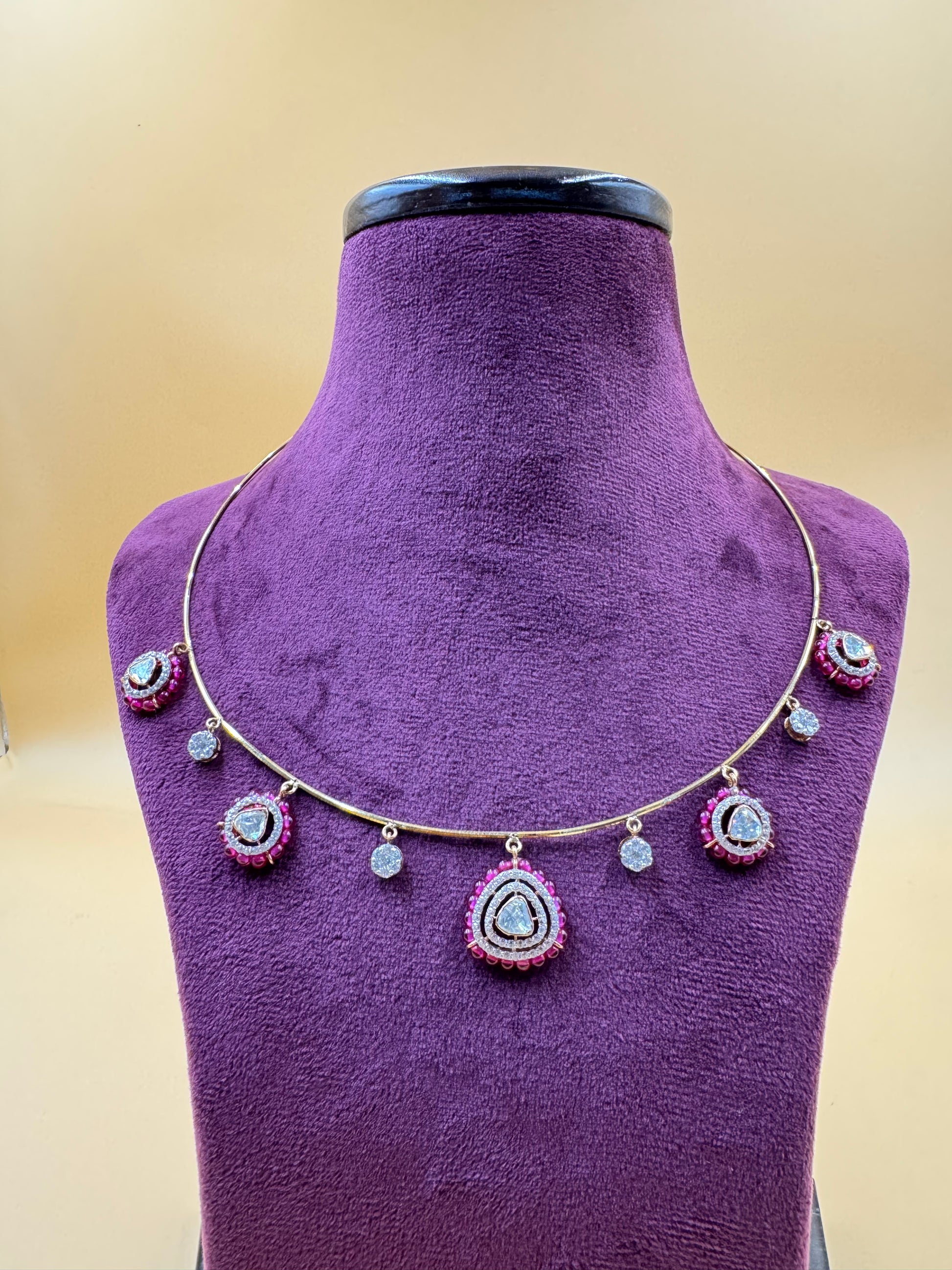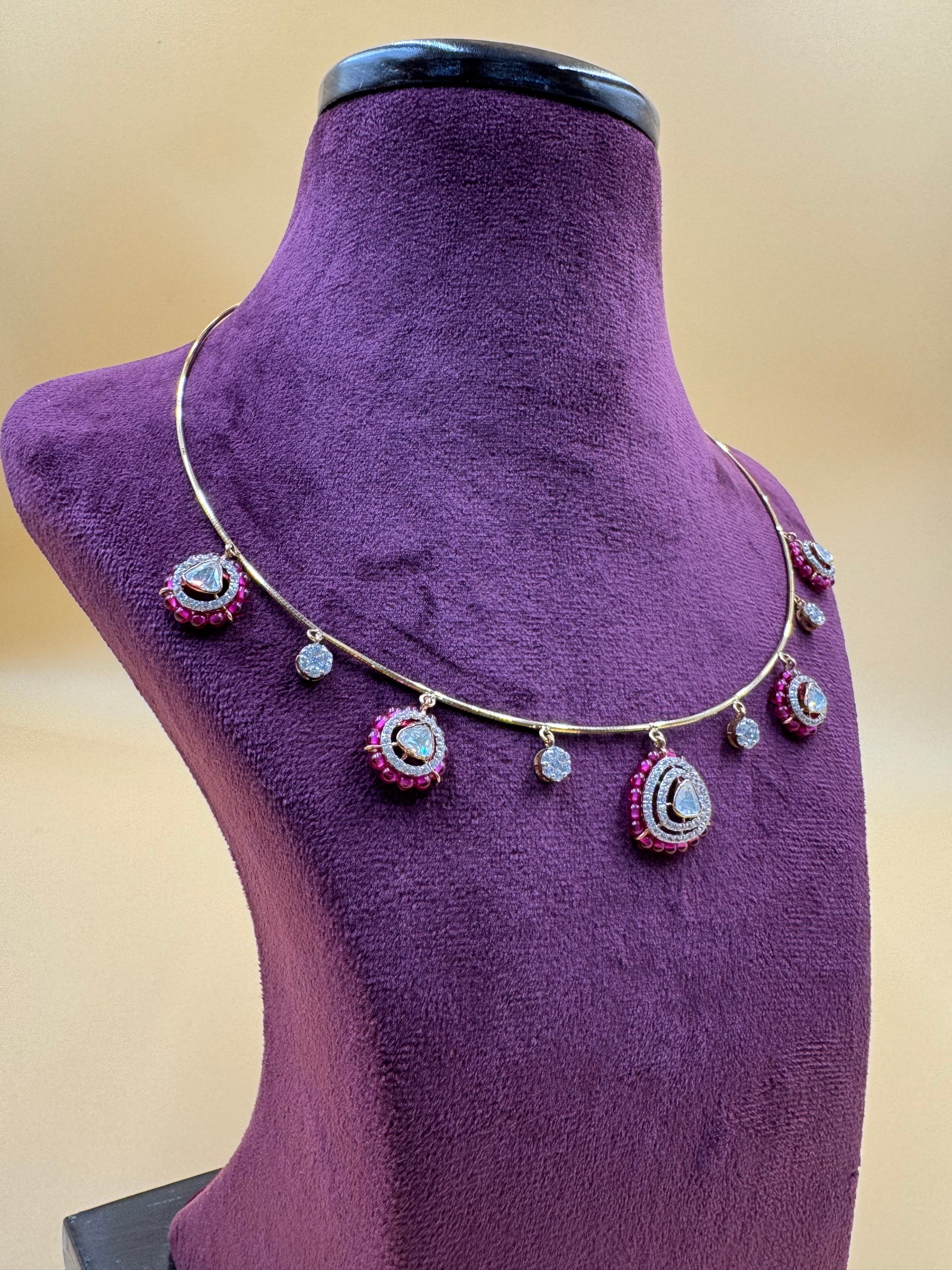 Elevate your style with this sophisticated thin kanti featuring vibrant red stones complemented by brilliant cubic zirconia accents. Meticulously crafted with an imported latest design, this elegant piece offers contemporary appeal while maintaining traditional charm. Perfect for both everyday wear and special occasions, this premium kanti adds refined luxury to any ensemble.